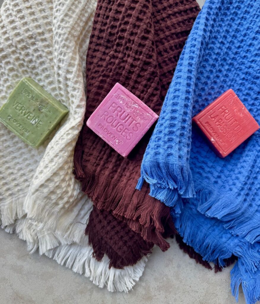 By popular demand, our beloved bath towels are making a return. The large bath sheet (100×150 cm) is perfect for lazy beach days or as an oversized shower companion, while the smaller hand towel (50×70 cm) adds a soft, stylish touch to any bathroom. All towels are made of organic cotton.
